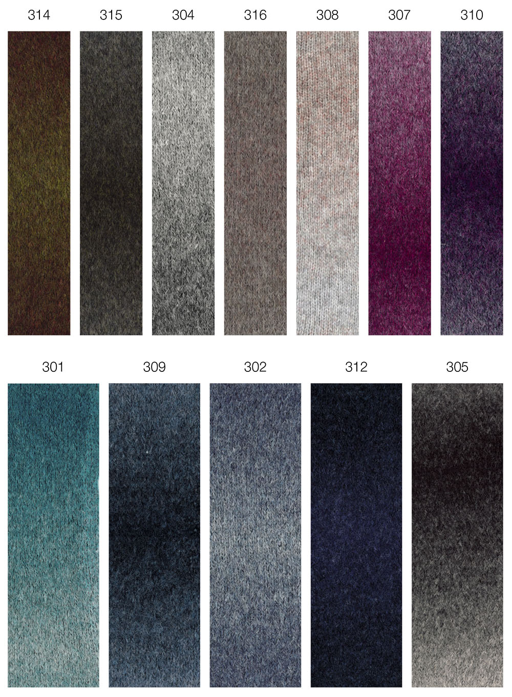 57 % Djevicavuna Merino, 20 % Mohair, 23 % Poliamid