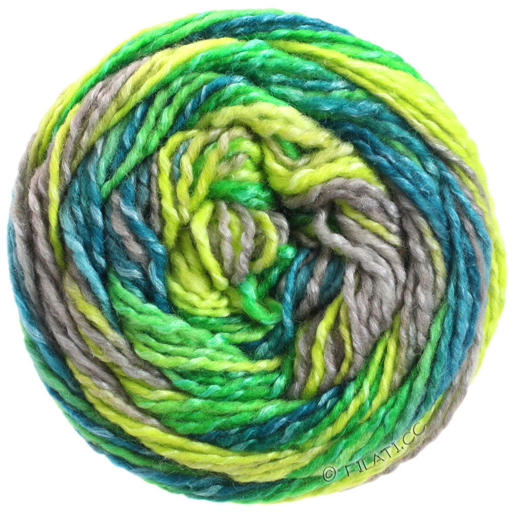 Blago uvijena prepletena pređa s plemenitim efektima matiranog sjaja putem merino vune i iridescentne svile