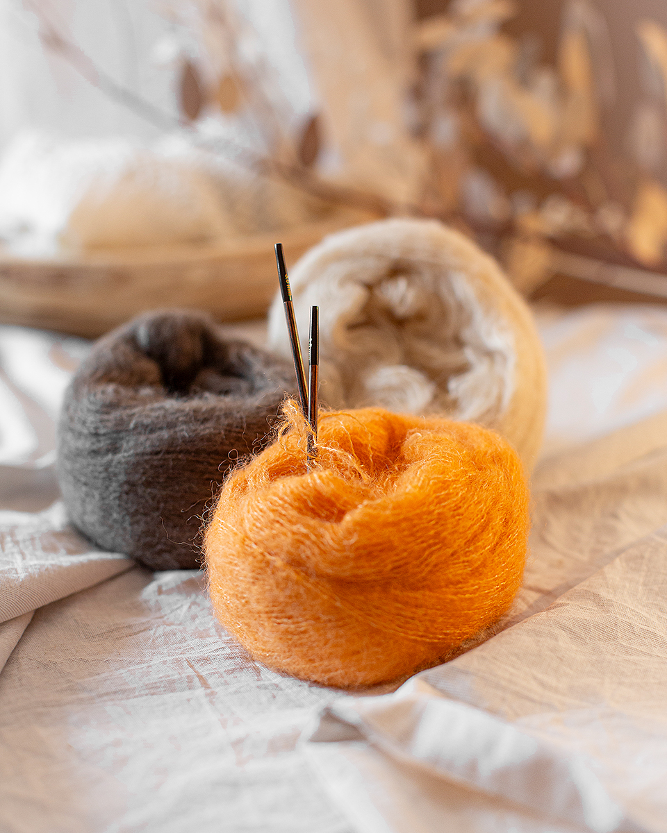 42 % Mohair, 38 % Djevicavuna Merino, 20 % Poliamid